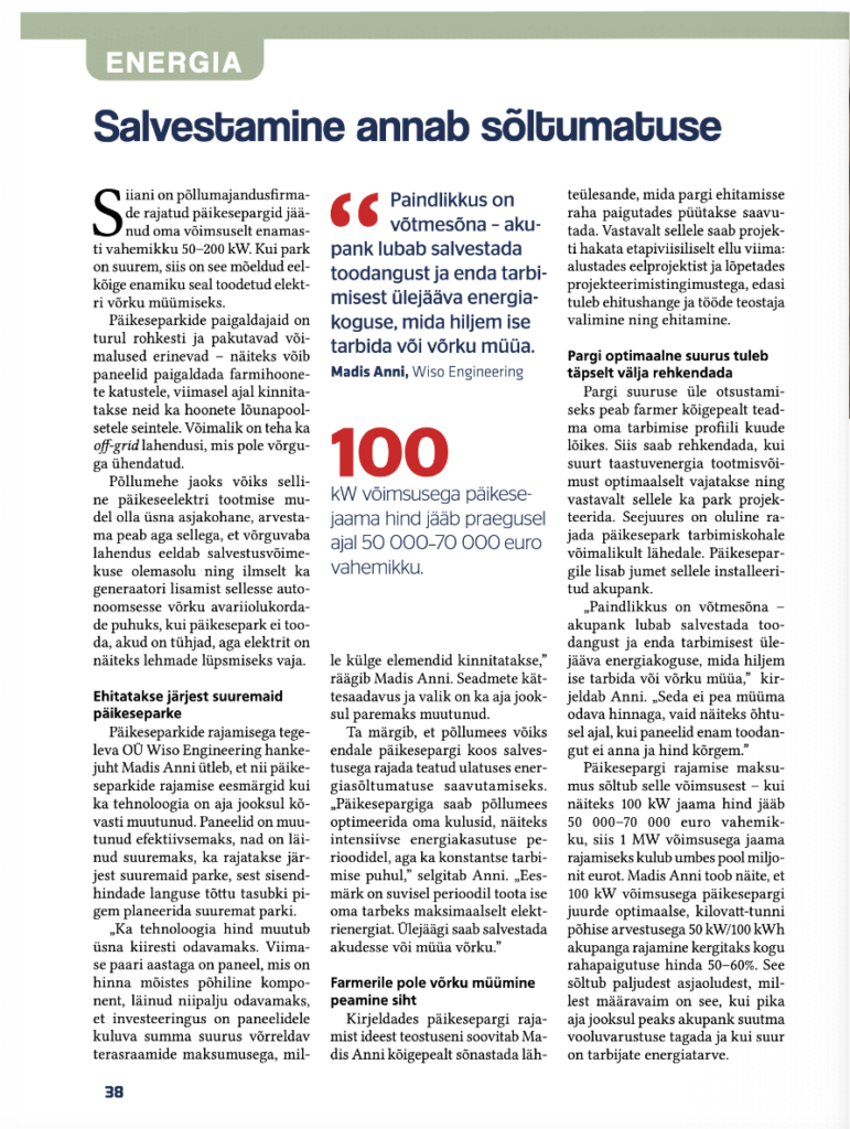 - novembril teatasid Corsica Sole ja Evecon ehitusprojektist, mille käigus rajatakse 2025. aastal Eestisse kaks salvestusparki koguvõimsusega 200 megavatti ning kogu-tootmisvõimsusega 400 megavatt-tundi[2].